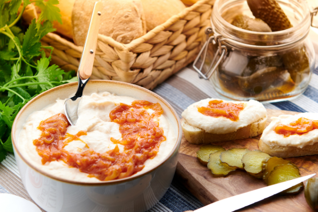 Opțiune lejeră, humusul echilibrează bine preparatele mai intense; servește-l cu bastonașe de legume.