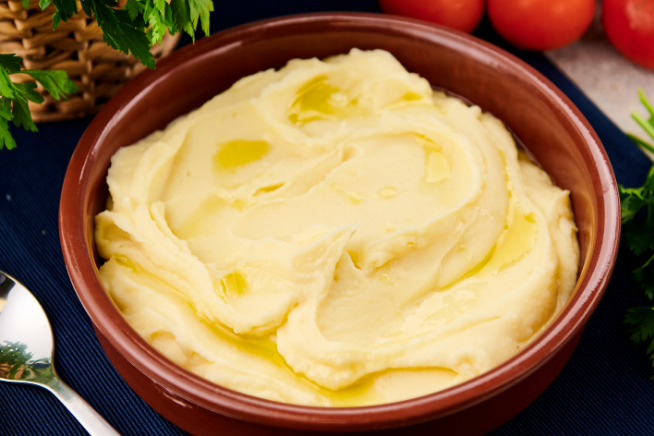 Piureul „îmbracă” sosul fripturii și este o garnitură ușoară pentru toți, inclusiv copiii invitaților prezenți la masă.