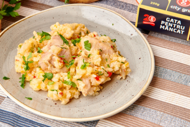 La birou, prânzul bun e cel care se mănâncă repede și îți dă energie, fără să se simtă greu. Cele mai potrivite sunt porțiile pe bază de orez, piure sau paste pentru că se încălzesc imediat și rămân consistente ca textură.
